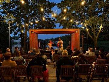 Koncert Violinanely a Meivise s krásným západem slunce v našem areálu 🎻🎸🌅
