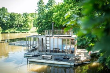 Probuďte se na vodě. V zátoce historické plovárny ukryté mezi stromy. Řeka všude kolem, dřevo pod nohama, nebe nad hlavou. Místo, kde se zastavíte a zjistíte, že nic víc nepotřebujete ✨