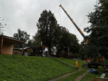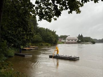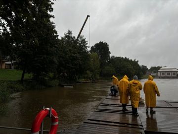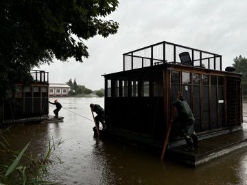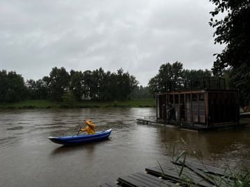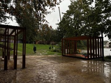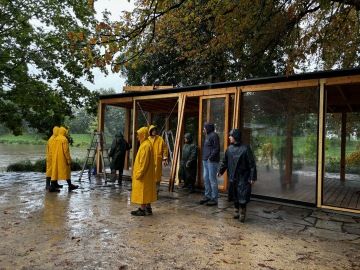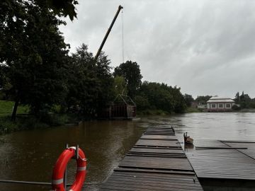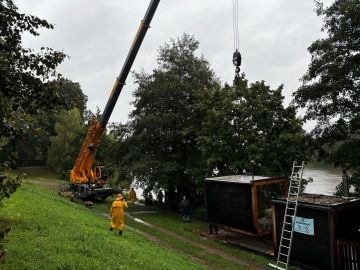 V rámci našich protipovodňových opatření jsme z Orlice museli vytáhnout naši plovoucí saunu, obytný altán a všech 15 dřevěných pontonů. Na břehu pak bylo nutné rozložit či přesunout několik dalších dřevostaveb.