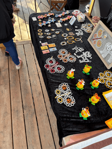 Stánkový prodej nabídl širokou škálu produktů spojených s Velikonocemi, včetně zdobené keramiky, proutěného zboží, pomlázek, kraslic, svíček, perníčků, pralinek, bylinek a květinových dekorací.