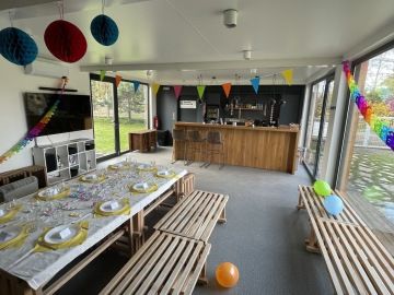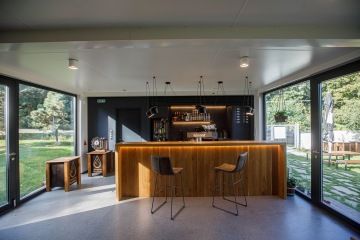 Stylově vybavený bar ve vstupní části areálu s možností venkovního posezení či grilování. Kapacita baru je až 45 osob.