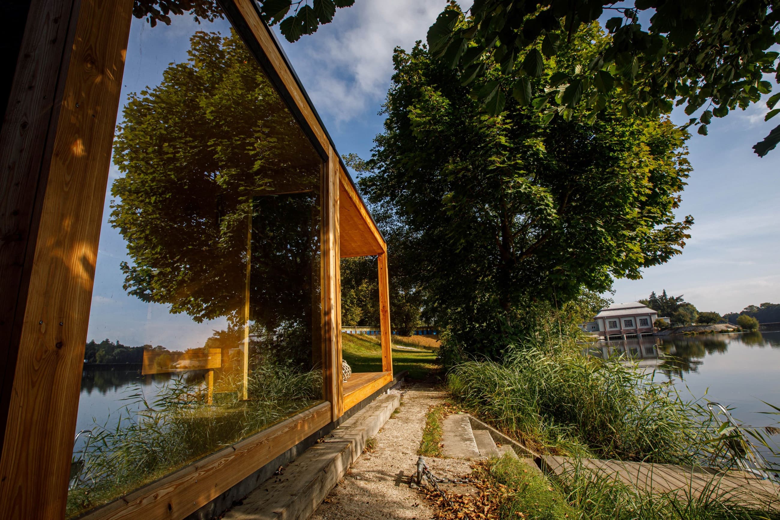 Stylově zařízený plovoucí dřevěný altán pro 2 osoby s možností přistýlky.