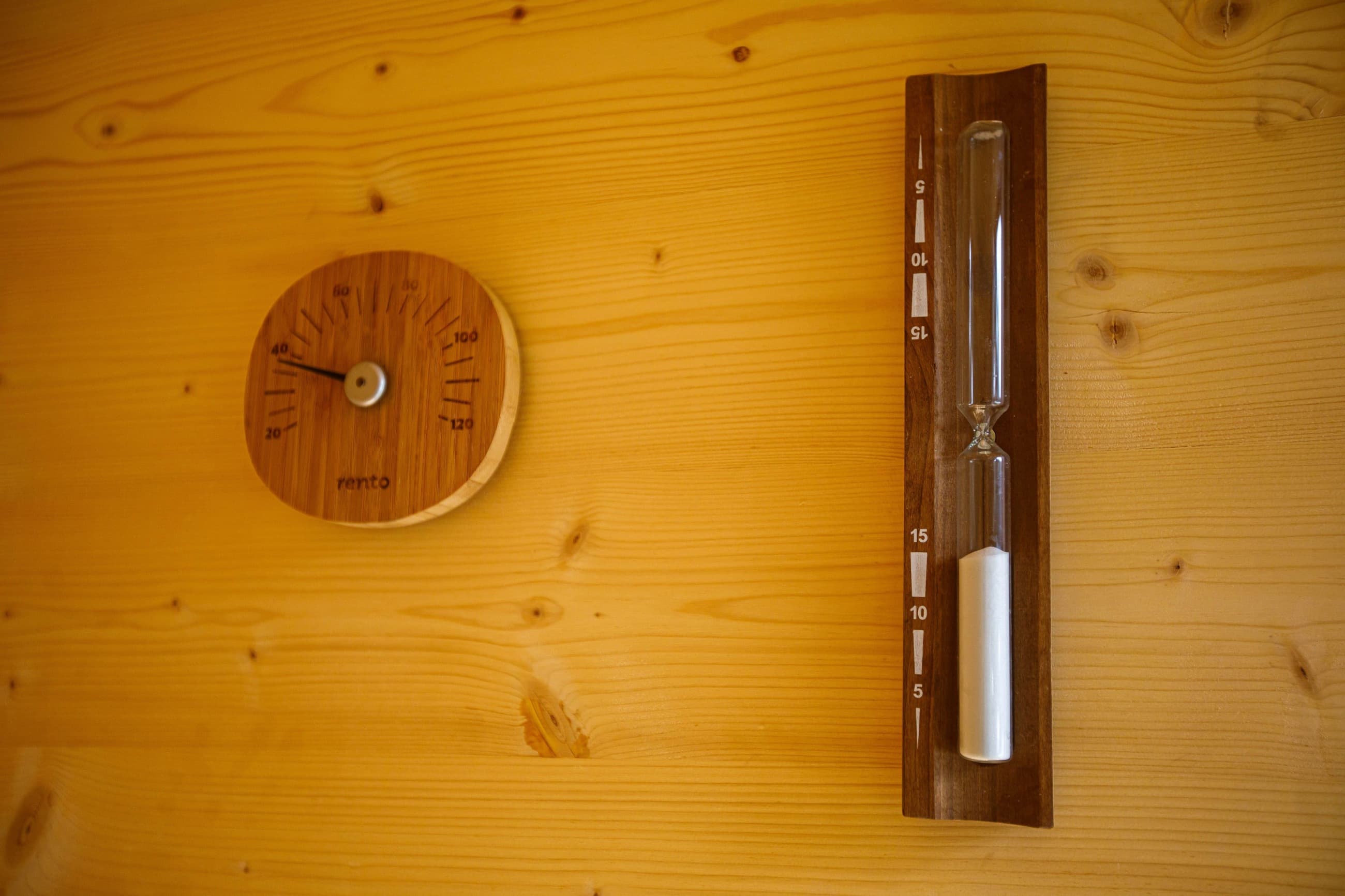 Solusauna je finská sauna vytápěná dřevem pro 2 osoby, každá další osoba za příplatek 250 Kč, (max. 5 osob).