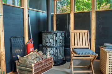 privátní sauna Solusauna: 700 Kč/saunování, cca 2 hodiny, vytápěná dřevem, v ceně prostěradla a košík dřeva
